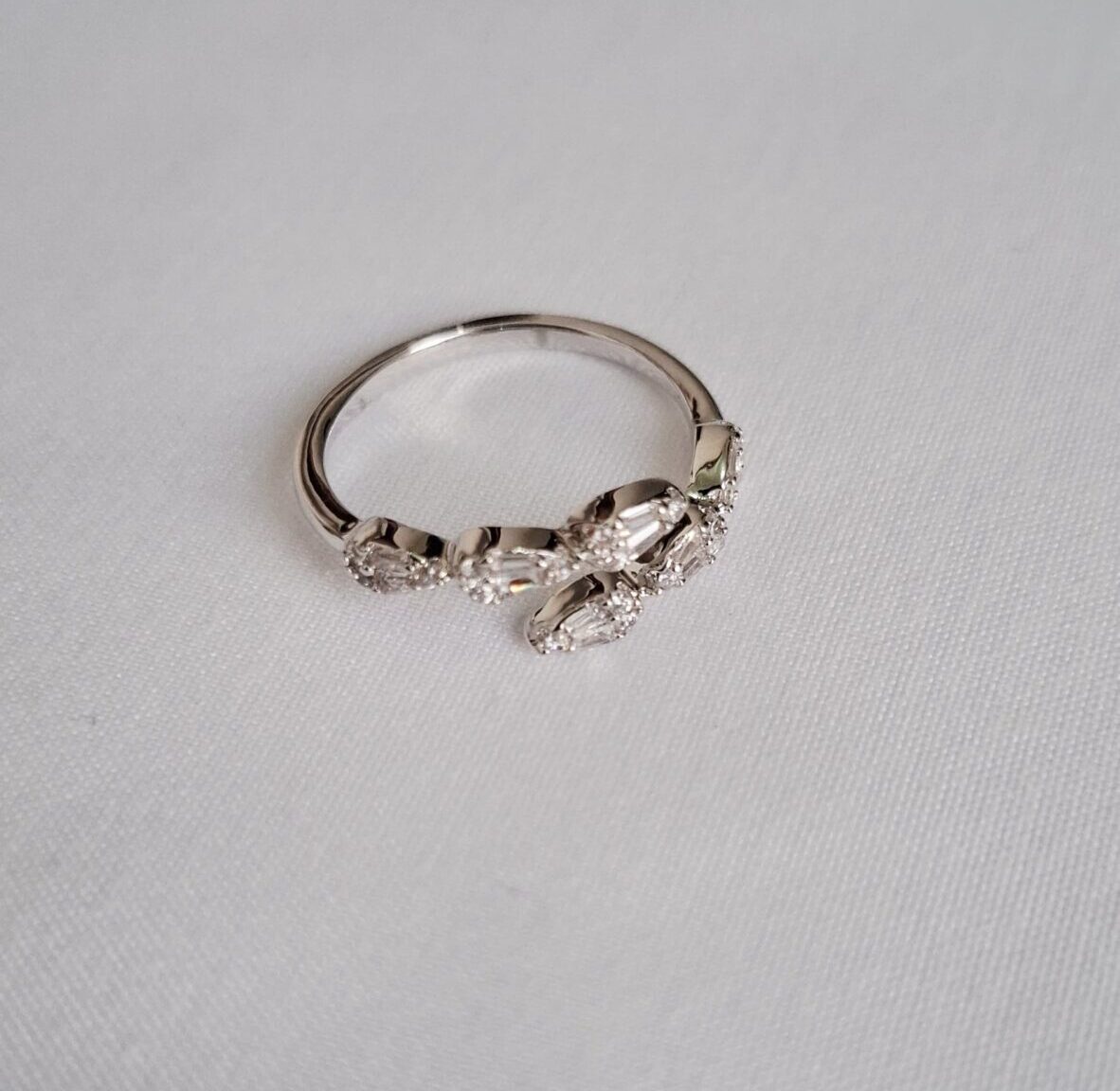 Anel banhado a ródio com zircônias cravejadas.