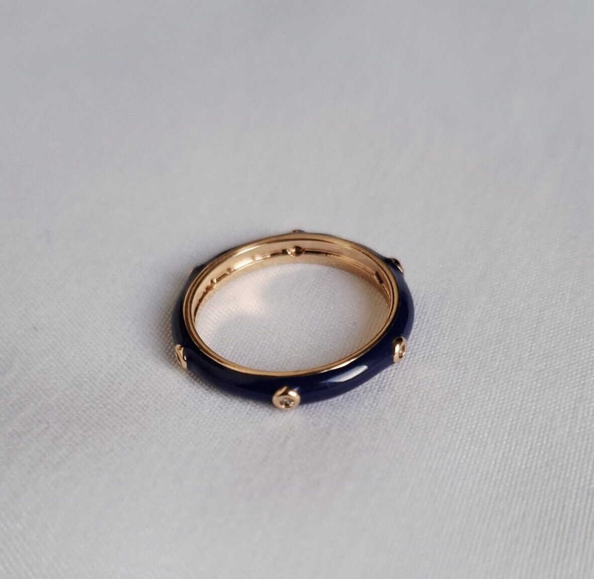 Anel esmaltado em azul banhado em ouro 18k com zircônias cravejadas.