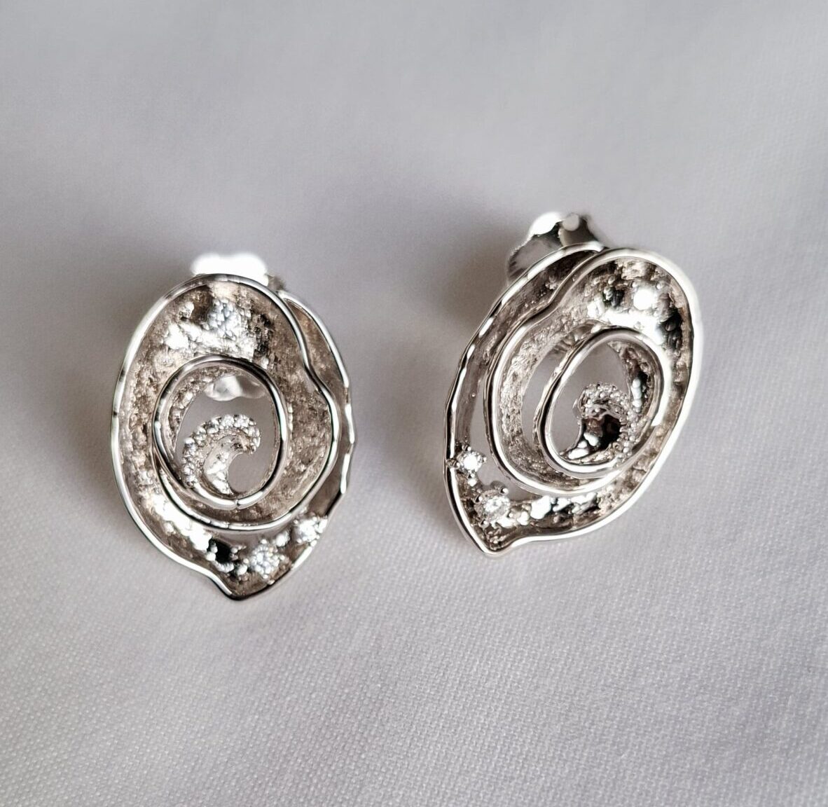 Brinco de flor em banho de ródio com zircônias cravejadas.
