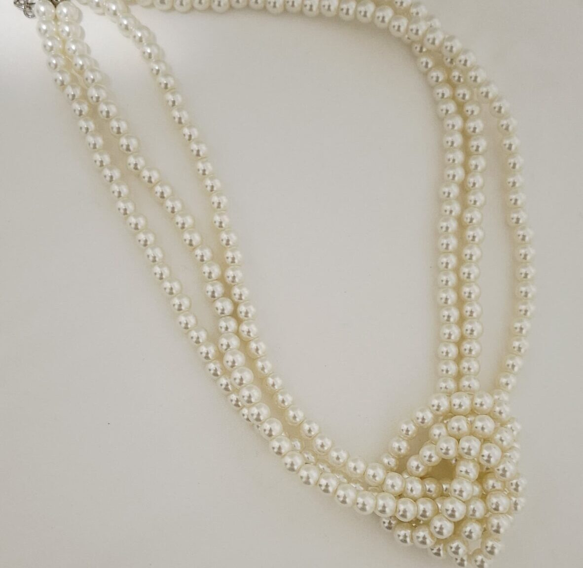 Colar de pérolas, 3 em 1, com fecho em banho de ródio.